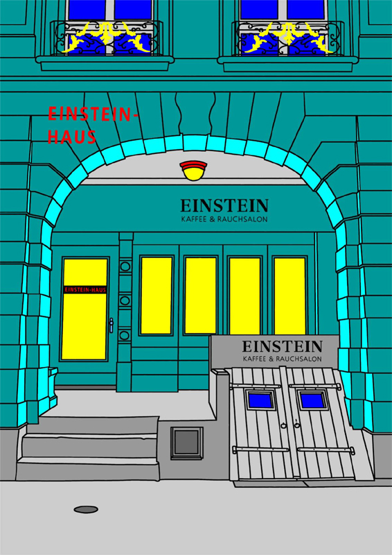 Über zwei Jahre dieses Ziel vor Augen, hatte ich aus einer lange unvermieteten Spelunke, allen Widrigkeiten zum Trotz, und unter aufreibendem Dauereinsatz, eine außergewöhnliche Lokalität fabriziert, die seither zu den bestbesuchten ›In-Plätzen‹ der Stadt Bern gehört. Man findet sie im Einstein-Haus. Ich taufte den Laden auf den Namen »EINSTEIN Kaffee & Rauchsalon«. Wenige Tage nach der Eröffnung hatte ich da nichts mehr zu suchen